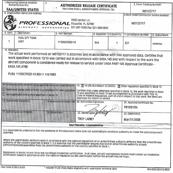 What’s New Surplus? Parts that have NO 8130 tag or certificate, but they are new and never