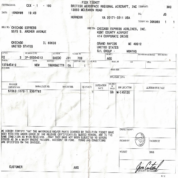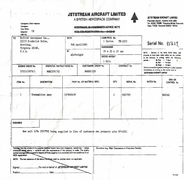 aircraft and comes with Yazco Aviation C of C as a traceability only.