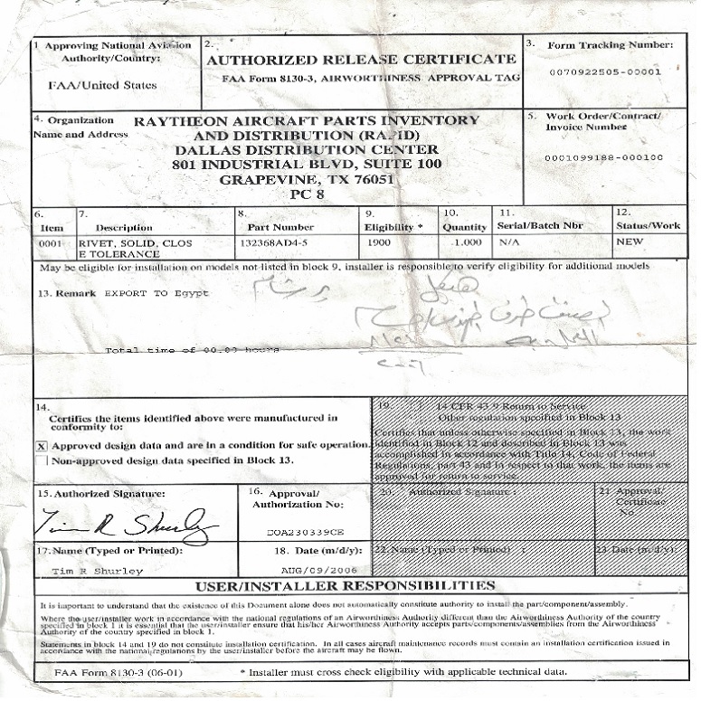 What’s New Surplus? Parts that have NO 8130 tag or certificate, but they