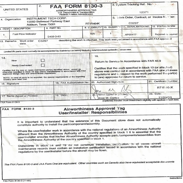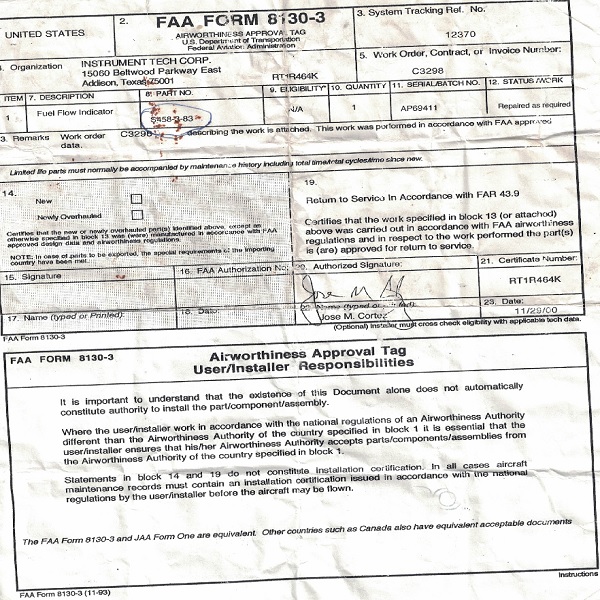What’s New Surplus: Parts that have NO 8130 tag or certificate, but they are new and never been used or installed on the aircraft and comes with Yazco Aviation C of C only.